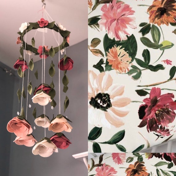 Moody Floral Inspired Felt Flower Mobile Garden Roses Mobile Etsy